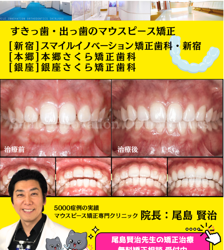 【症例解説】すきっ歯と出っ歯を同時に治療|マウスピース矯正の実際の症例|インビザラインブログを更新しました